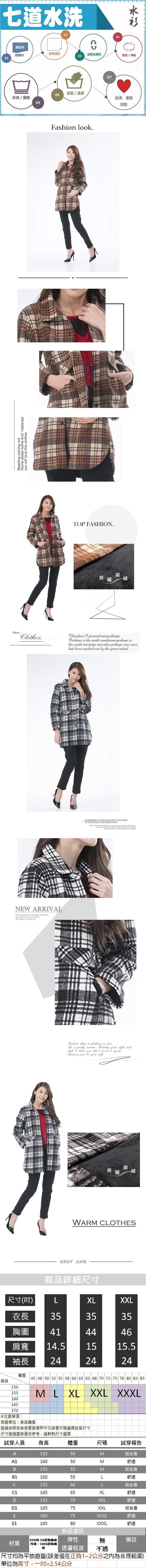 【水衫】優雅毛呢格紋內刷絨大衣(G09-96)透氣嗎穿久了會悶熱嗎