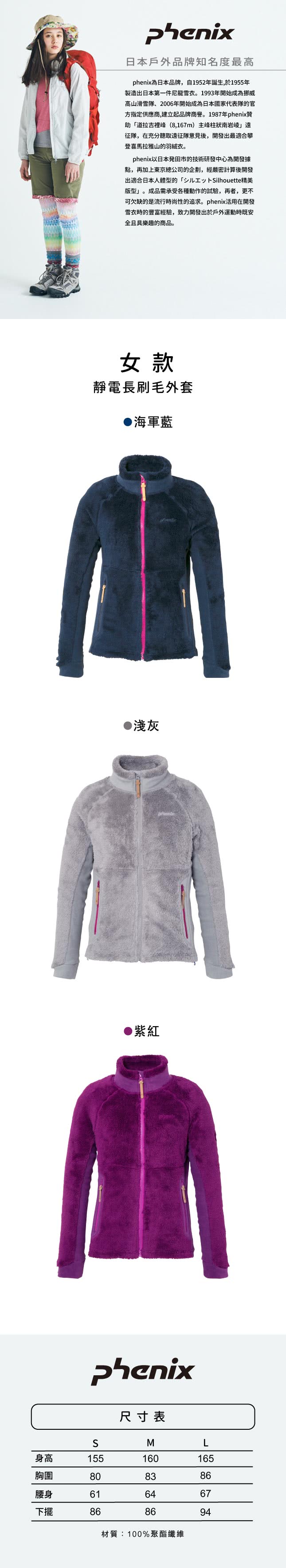 【Phenix】女抗靜電長刷毛外套(紫紅)透氣嗎穿久了會悶熱嗎